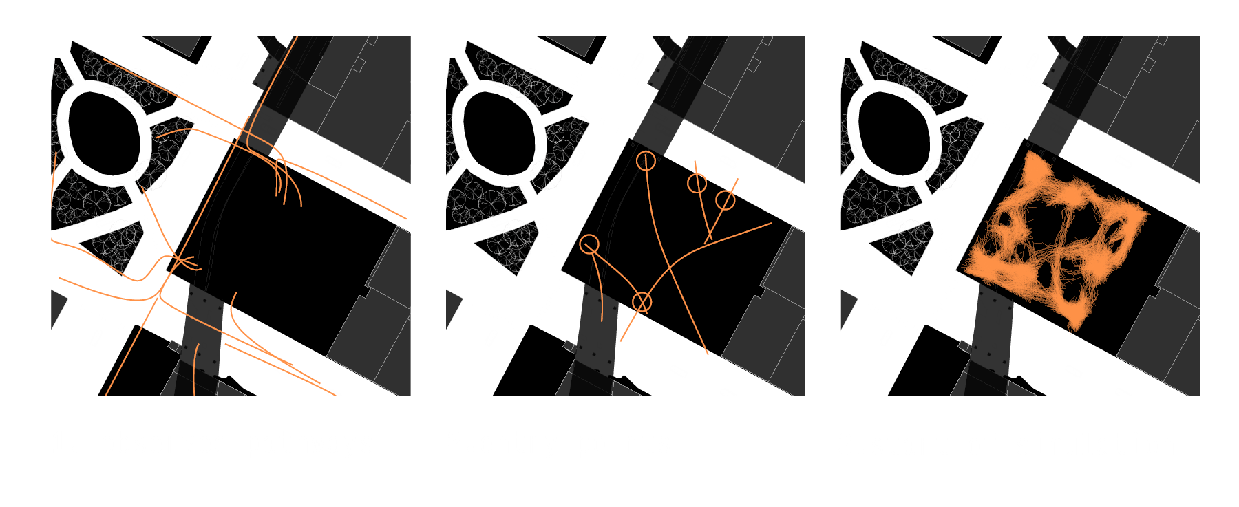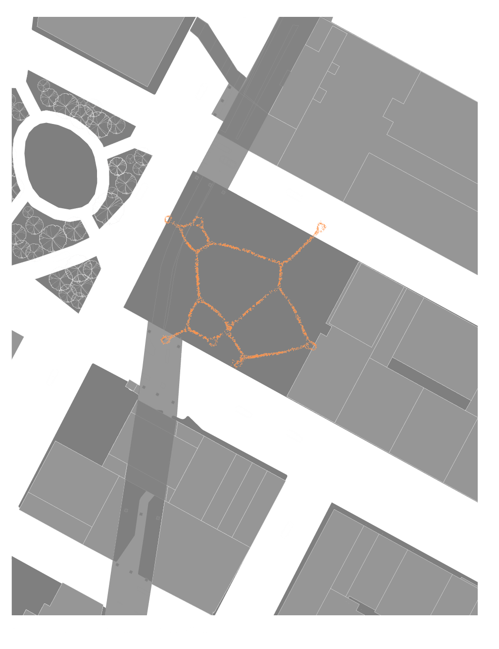 Pod70 was created using a stigmergic logic to aid in the design of the site block and floor plans. The seen axis are results from increasing access to the plot of land itself.